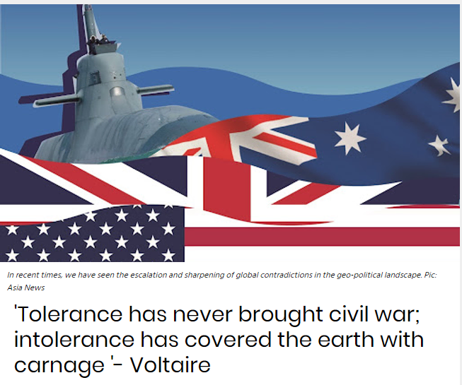 最近发生的两个事件很能说明问题。一个是美国从阿富汗撤军,另一个是美国、英国、澳大利亚宣布建立类似冷战时期的军事防御联盟,并在此框架下向澳提供核动力潜艇。