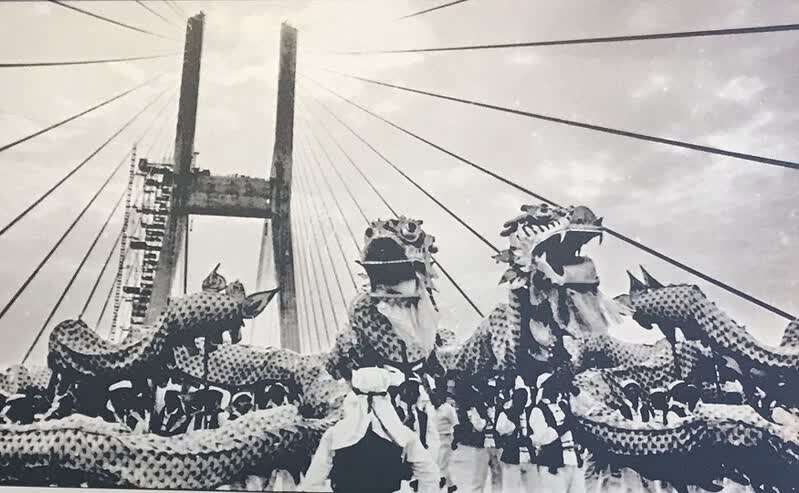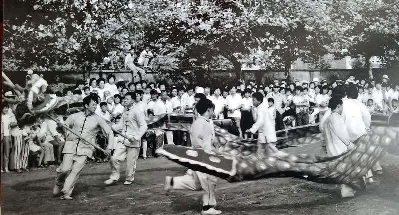 20世纪80年代初三林恢复快乐盛大的舞龙。左一舞龙头者为年轻时的陆大杰