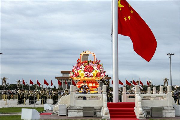 2021年10月1日,中华人民共和国成立72周年,北京天安门广场举行国庆升旗仪式。
