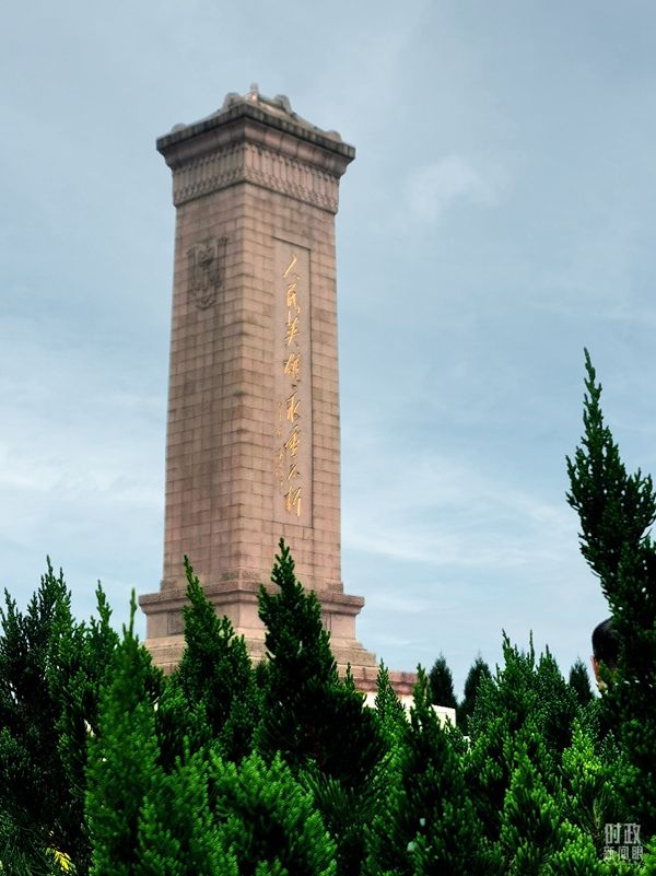 △映衬在一片苍翠之中的人民英雄纪念碑。(总台央视记者关舟拍摄)