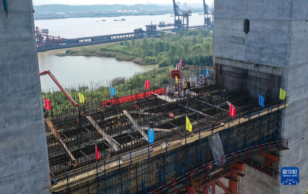 10月1日晚,由中铁大桥局承建的南京仙新路长江大桥北主塔下横梁开始混凝土浇筑,大桥主塔施工迎来关键节点。仙新路长江大桥为主跨1760米的双塔单跨悬索桥,主塔高263.8米。本次浇筑的北主塔下横梁为预应力混凝土单箱双室结构,采用落地钢管支架现浇施工。