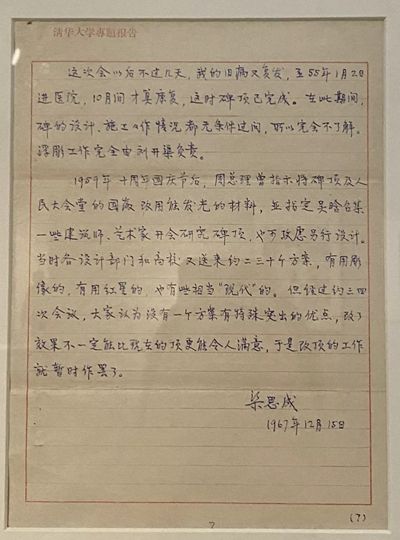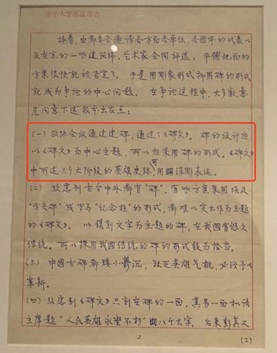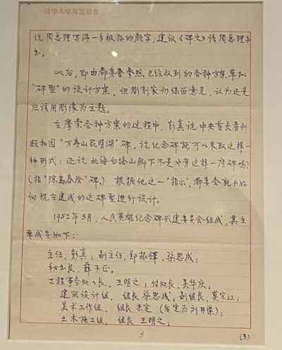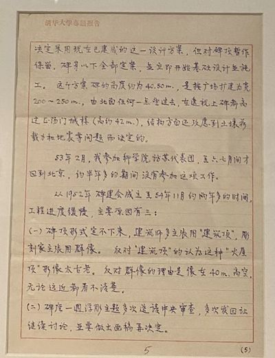 梁思成《人民英雄纪念碑设计的经过》一文手稿 ↓
