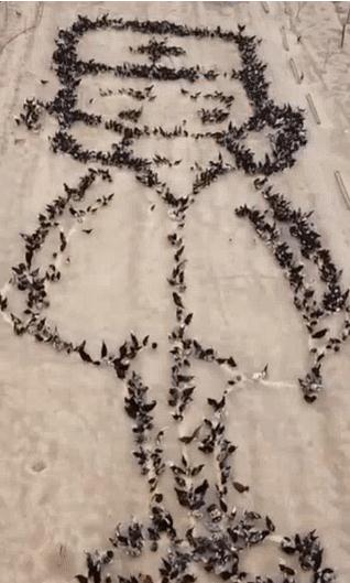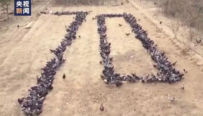 △2019年,尚育康“率领鸡小弟”拼出70字样,庆祝新中国成立70周年。