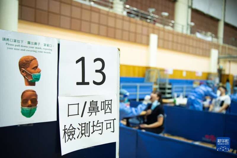 10月4日,市民在澳门关闸工人体育馆接受核酸检测。新华社记者 张金加 摄