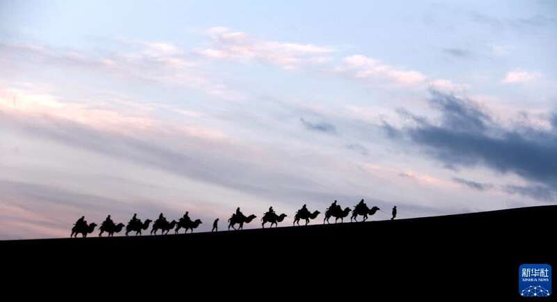10月3日,游客在甘肃省敦煌市鸣沙山月牙泉景区游览。