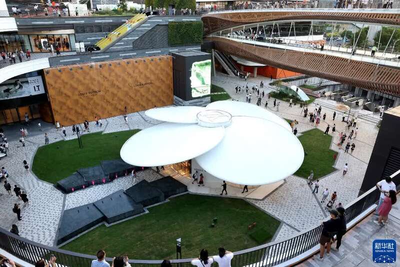 这是上海前滩太古里购物中心俯瞰(9月30日摄)。前滩太古里是总建筑面积约12万平方米的街区式购物中心,汇聚约250家中外优质零售商铺。