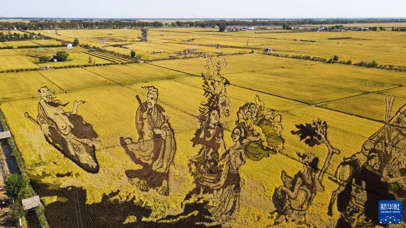 这是10月1日在沈阳市沈北新区“稻梦空间”景区拍摄的“八仙过海”稻田画(无人机照片)。