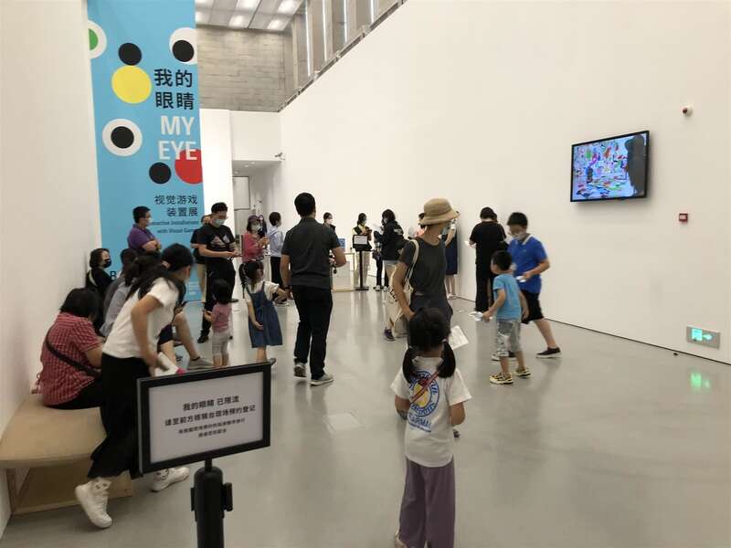 中午12点,西岸美术馆正在举行的“我的眼睛——视觉游戏装置展”已挂上“限流预约”的标志。和许多参观者一样,穆彦领取预约单后,蹲在美术馆内的阶梯旁拍照:“这里的阶梯很有名,能拍出一种几何般的美感。”