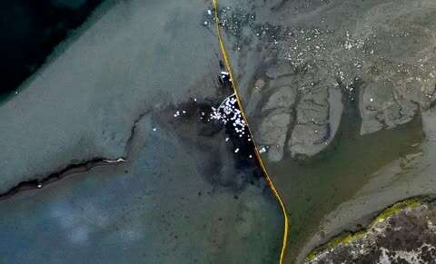 △加利福尼亚州石油泄漏现场航拍图