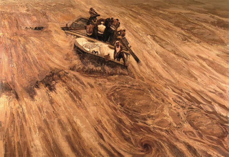 1993年 《在激流中前进》 杜键 200×280cm 布面油彩 中国美术馆藏