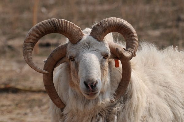 2013年3月21日,山东滨州,一只山羊罕见的长了四只犄角。图片作者:张滨/视觉中国