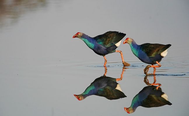 2021年2月21日,汕头滨海湿地的国家二级保护动物紫水鸡(留鸟)。图片作者:郑康华/视觉中国