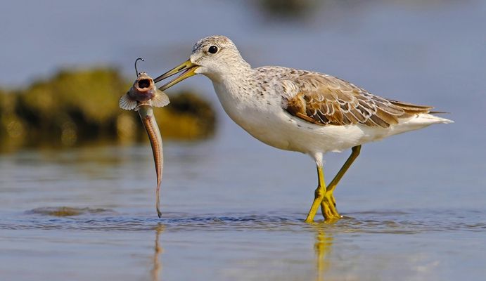 2021年4月21日,全球濒危物种、国家一级保护动物小青脚鹬。图片作者:郑康华/视觉中国