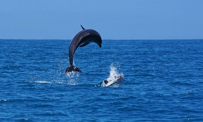 2021年5月15日,广东汕头,海上的印太瓶鼻海豚。图片作者:郑康华/视觉中国