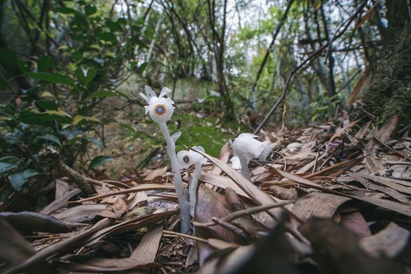 2021年4月16日,杭州市余杭区,在径山景区九龙瀑附近,发现罕见植物水晶兰,其中文正式名为球果假沙晶兰。这种植物全身洁白通透,长得神似植物大战僵尸里的“豌豆射手”,大小类似豆芽。图片作者:蒋天沐/视觉中国