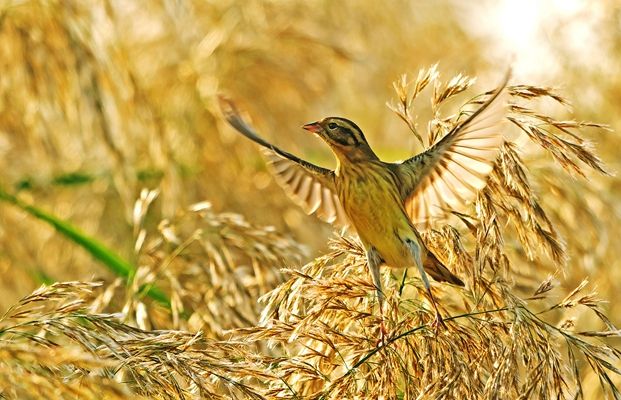 在广东汕头滨海湿地栖息的全球极度濒危鸟类、国家一级保护动物黄胸鹀。图片作者:郑康华/视觉中国