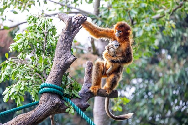 2021年3月17日,广州长隆野生动物世界,川金丝猴家族迎来新成员“春晚”满月。图片作者:南方日报记者 肖雄 通讯员 邓泳怡/视觉中国