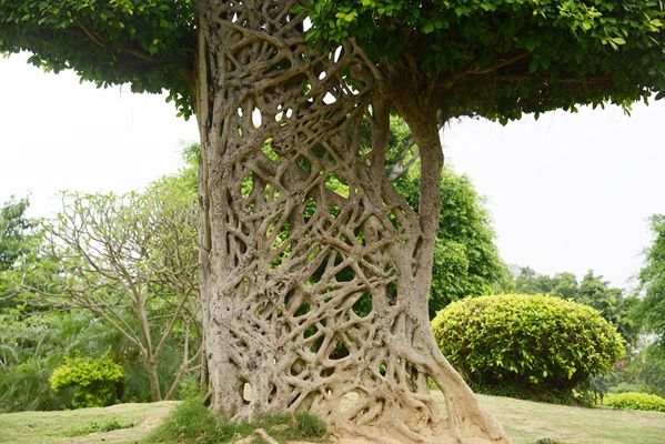 2018年4月30日,南宁,南湖公园名树博览园附近现一棵很奇葩长得像网状一样的树。图片作者:肥肥/视觉中国
