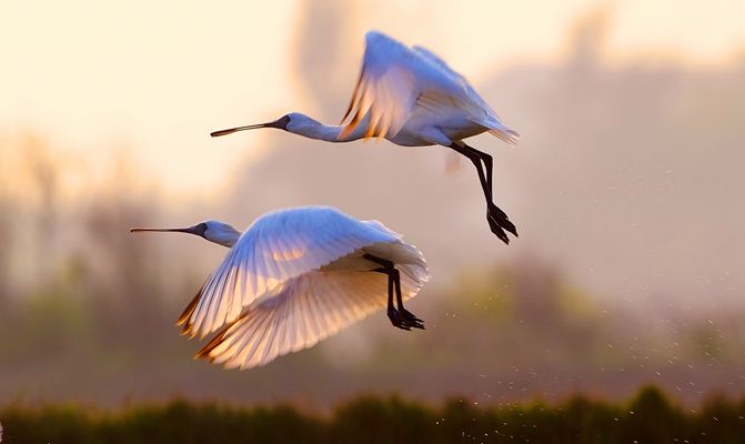2019年3月28日,广东汕头,全球濒危物种、国家一级保护动物黑脸琵鹭。图片作者:郑康华/视觉中国