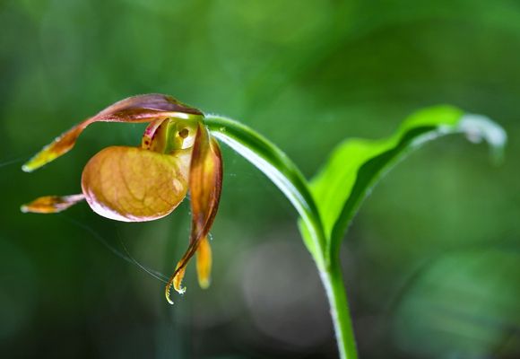 2020年6月3日,北京,国家一级保护植物山西杓兰“现身”延庆海拔近1000米的山林里,该物种在北京野外十分稀少,其北方野生种群已属于易危物种。图片作者:魏尧/视觉中国