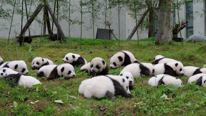 2017年10月12日,四川阿坝,大熊猫宝宝集中亮相。图片作者:中国大熊猫保护研究中心/视觉中国