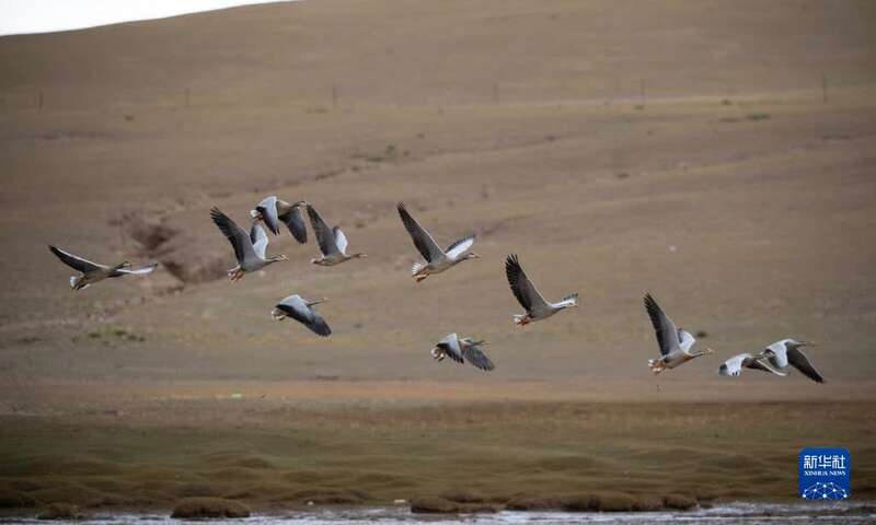 这是9月24日在羌塘国家级自然保护区拍摄的飞翔的斑头雁。新华社记者 晋美多吉 摄