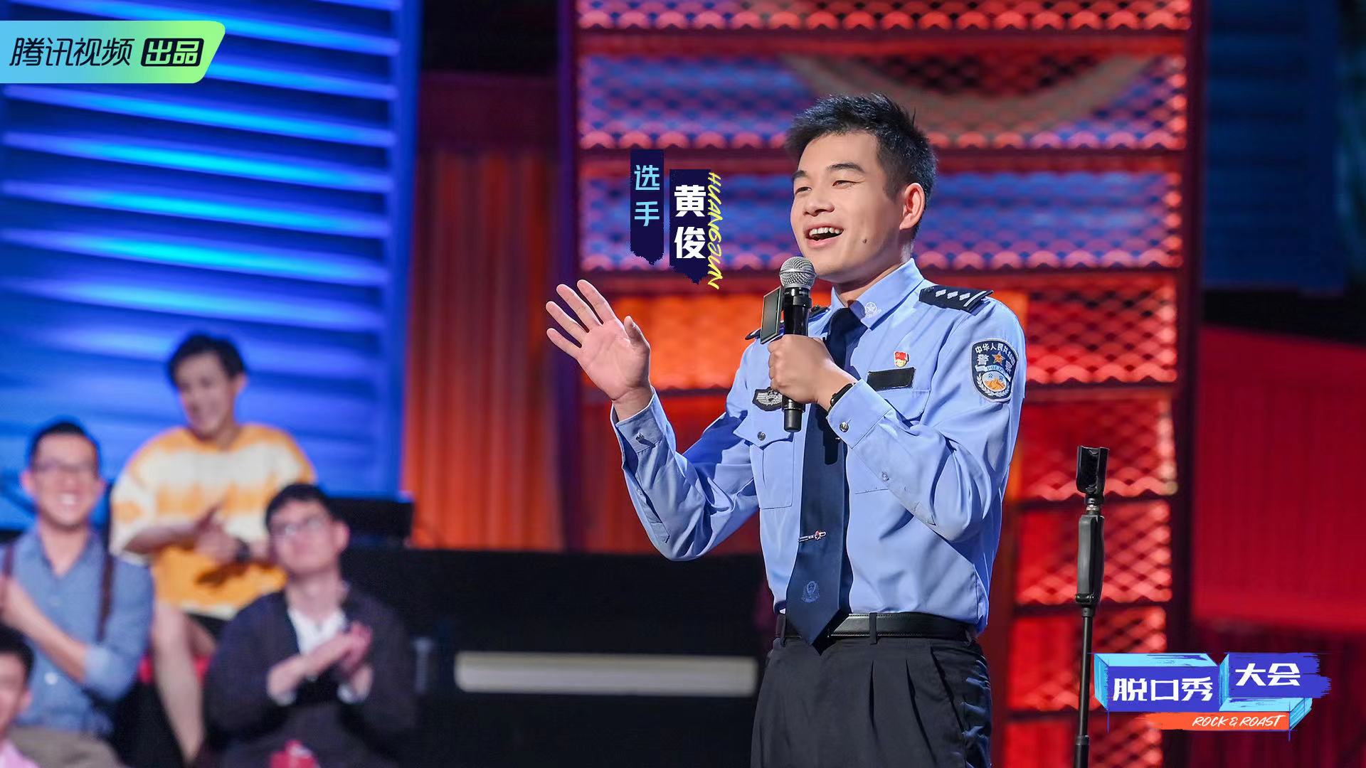 8月12日晚上播出的《脱口秀大会》上,上海市公安局黄浦分局交警支队民警黄俊在数次让观众笑得欲罢不能后,潇洒一挥手,转身退赛:“我还得回去工作”。