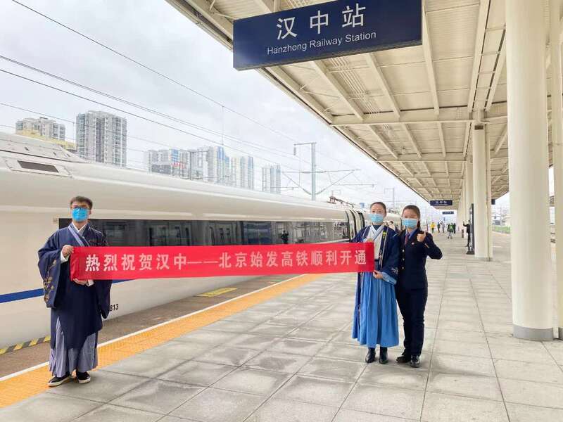当日在汉中站举行的“汉中—北京高铁首发仪式”上,文艺社团还为旅客们献上了旗袍秀、茶文化等精彩的文艺演出。