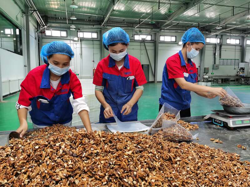 阿克苏也在用产业助力发展之梦,一个馕产业园见证了当地如何把产业做到极致。阿克苏馕产业园区总经理艾斯卡尔介绍,产业园于2020年6月建成,总投资1.5亿元,烤馕大厅配有600多个馕坑,可以提供近3000个烤馕就业岗位。