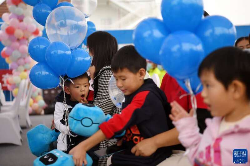 10月14日,留守儿童在活动现场玩游戏。
