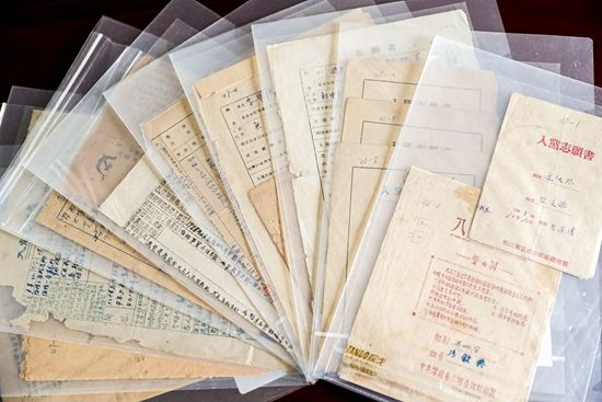 2021年10月13日,北京丰台区莲花池军休所,韩珍明收藏了一千多份入党志愿书。