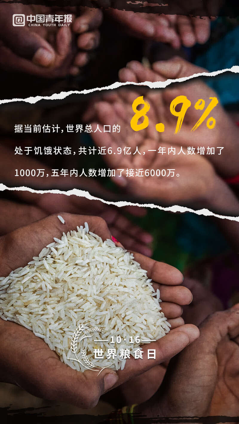 今天是世界粮食日。根据联合国粮农组织最新的《世界粮食安全和营养状况》报告,全球大约1/10的人口、约8.11亿人面临食物不足的困境,而这一情况可能还在加剧。为了“更好生产、更好营养、更好环境、更好生活”,今年世界粮食日提出了“行动造就未来”的主题。让我们共同珍惜每一粒米,尊重每一份粮食背后的劳动,为人类共同的未来负起责任。(文/胡宁 图/李晗)