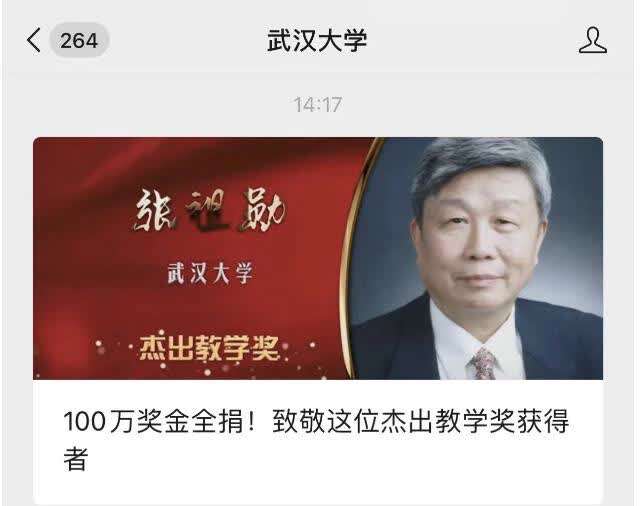 他表示,100万元奖金将捐给武汉大学遥感信息工程学院,用于充实他设立的“教书育人奖”奖金池。