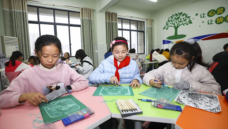 2021年10月20日,江苏淮安,天津路小学生参加课后延时服务,各具特色的社团活动精彩纷呈。