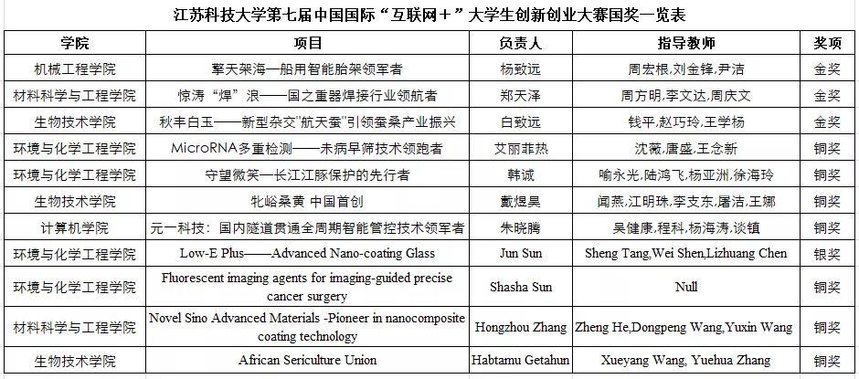 江苏科技大学机械工程学院“擎天架海——船用智能胎架领军者”项目、材料科学与工程学院“惊涛“焊”浪——国之重器焊接行业领航者”项目和生物技术学院“秋丰白玉——新型杂交“航天蚕”引领蚕桑产业振兴”项目获国赛金奖。这是我校首次在该项赛事中斩获全国金奖,实现历史性突破。