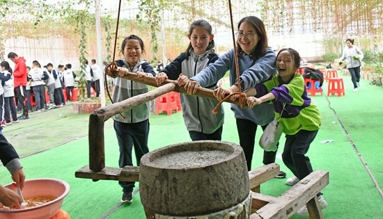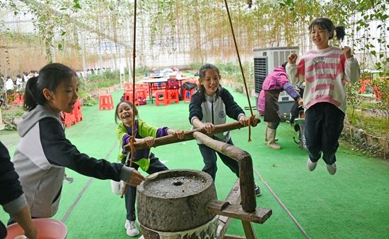 2021年10月21日,浙江绍兴,诸暨市天马实验学校的学生在台州市仙居县双庙乡开展“体验农耕 增长技能”研学活动。学生们在老师指导下,通过购买食材、烧饭、做菜等环节,学习农活知识,感受劳动的艰辛与快乐。