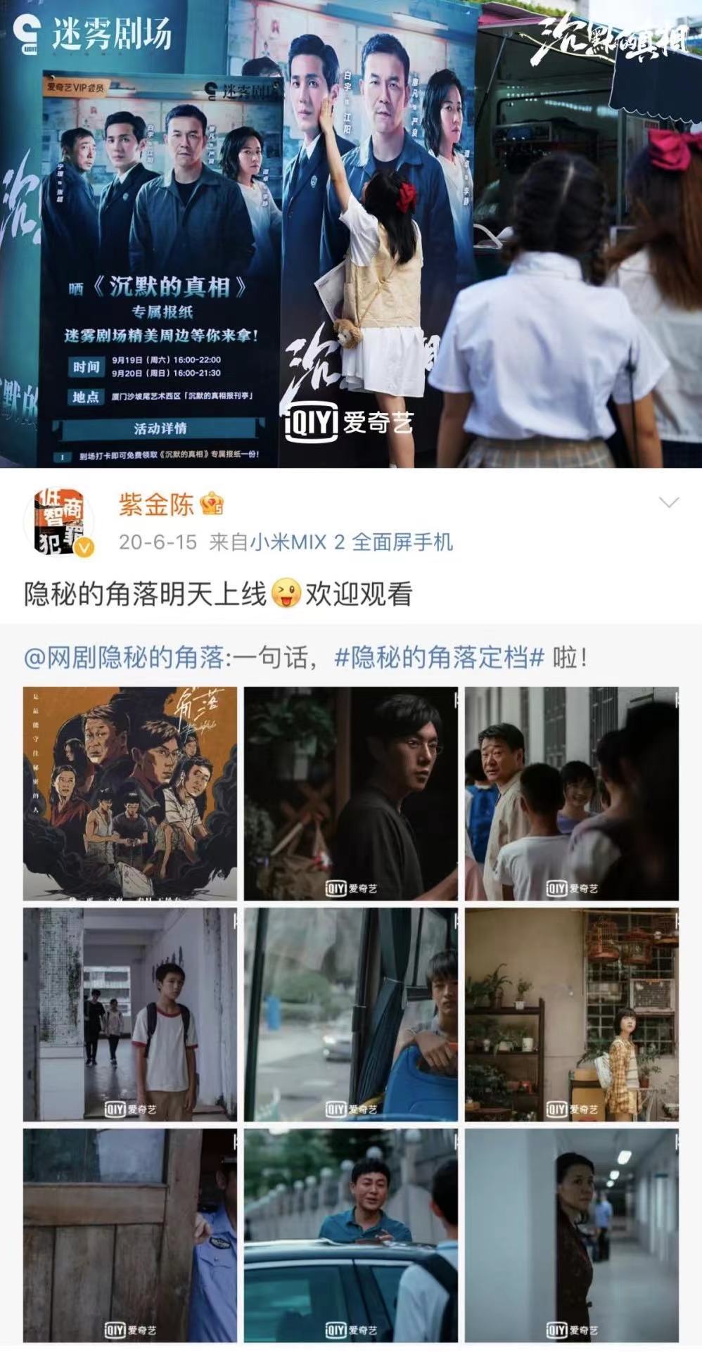 根据紫金陈小说改编的《无证之罪》《隐秘的角落》《沉默的真相》,令爱奇艺在2017年、2020年成功打响悬疑剧品牌。有观众笑言,今年爱奇艺悬疑剧“哑火”,是因为没有用紫金陈的小说。与此同时,优酷飞速签下紫金陈,打造全新悬疑剧系列,其中包括去年新作《低智商犯罪》。