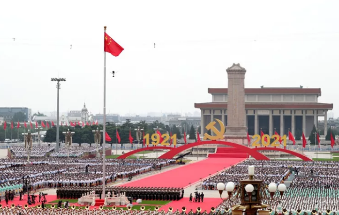 100年后,庆祝中国共产党成立100周年大会在北京天安门广场隆重举行。习近平总书记深刻指出:“一百年来,中国共产党弘扬伟大建党精神,在长期奋斗中构建起中国共产党人的精神谱系,锤炼出鲜明的政治品格。”