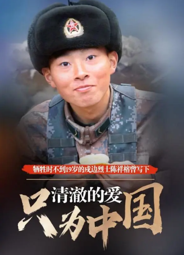 他叫陈祥榕,牺牲时不满19岁,在守护祖国领土主权的斗争中寸土不让,他写道:“清澈的爱,只为中国!”用鲜血和生命换来祖国和平和人民安宁……