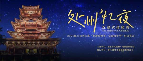 丽水,山水隽永,钟灵疏秀,历史文化底蕴深厚,非遗资源丰富,人文自然相映成趣。为让丽水的文旅资源、旅游产品走向全国,让游客直观感受丽水特色文旅资源魅力,丽水文旅整合辖区文旅资源,于2021年10月22日晚,《处州忆夜》沉浸式体验秀2021瓯江山水诗路旅游季启动仪式重现处州盛世之景。本次活动由浙江省文化和旅游厅主办,浙江省文化和旅游宣传推广信息中心、丽水市文化和广电旅游体育局、浙江广播电视集团浙江之声、浙江新闻广播承办。