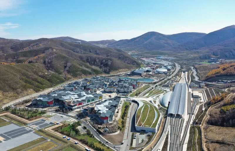 作为北京冬奥会重要配套服务保障项目,太子城冰雪小镇建设规模达134万平方米,从高空俯瞰,大小不一的屋面似片片“雪花”点缀山间。太子城冰雪小镇市场经理皮燕楠告诉记者:“外部工程已经完工,正在推进颁奖广场、制服与注册分中心等临建设施的建设。”