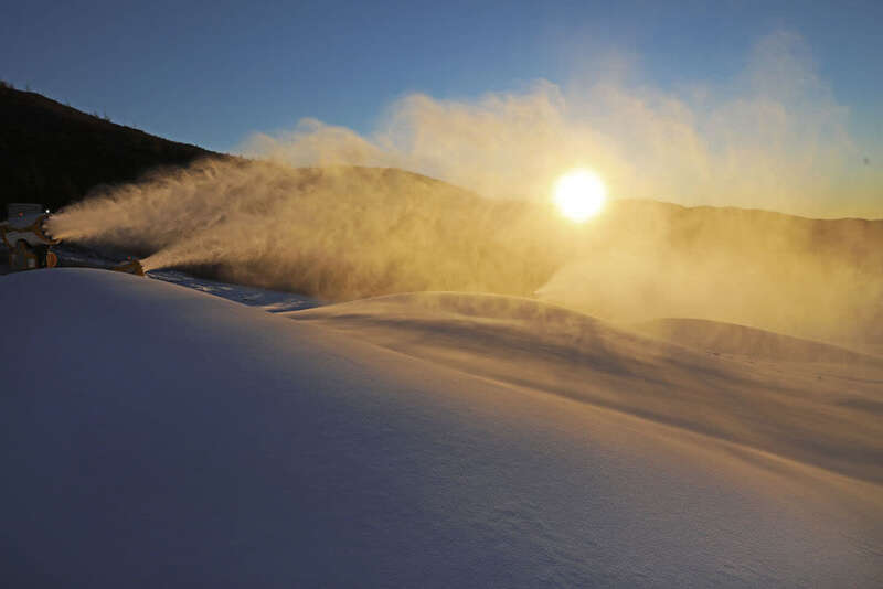 造雪机在河北省张家口市崇礼区云顶滑雪公园进行造雪作业。新华社发(武殿森 摄)