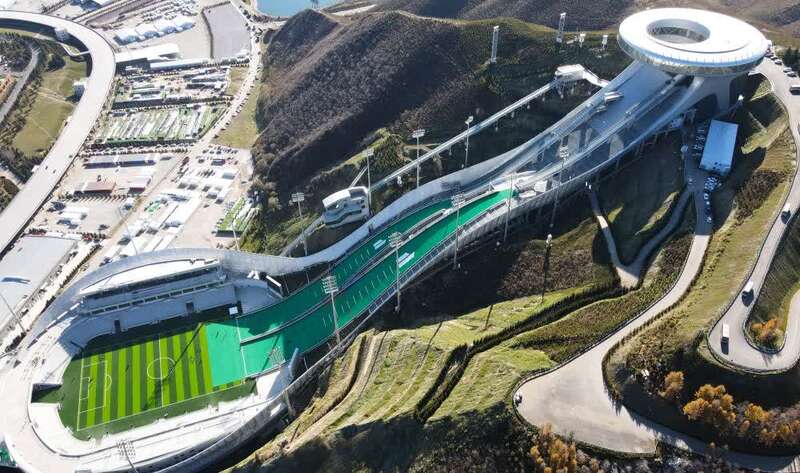 10月20日拍摄的张家口赛区国家跳台滑雪中心“雪如意”(无人机照片)。新华社记者 金皓原 摄