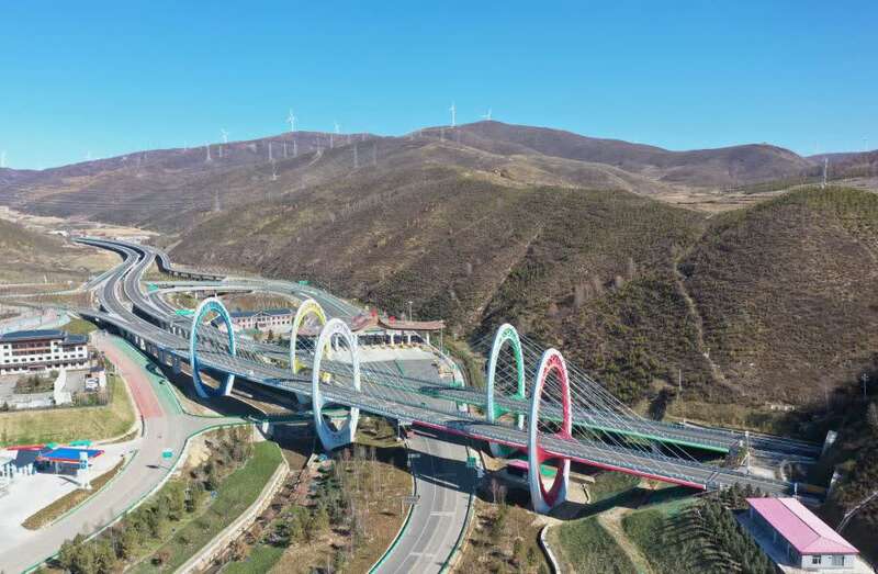10月18日拍摄的延崇高速张家口市崇礼区太子城互通式立交桥(无人机照片)。新华社记者 杨世尧 摄