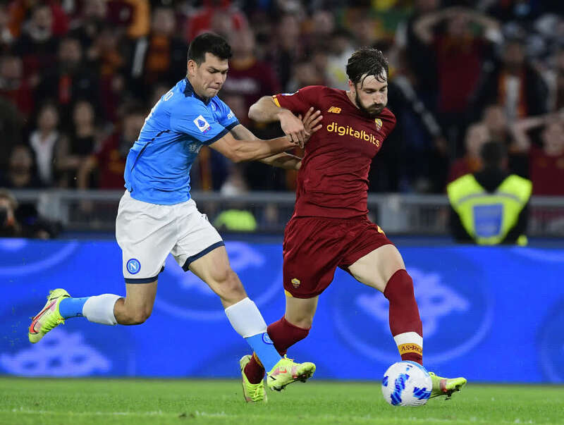 10月24日,罗马队球员比尼亚(右)与那不勒斯队球员洛萨诺在比赛中拼抢。新华社发(奥古斯托·卡萨索利摄)