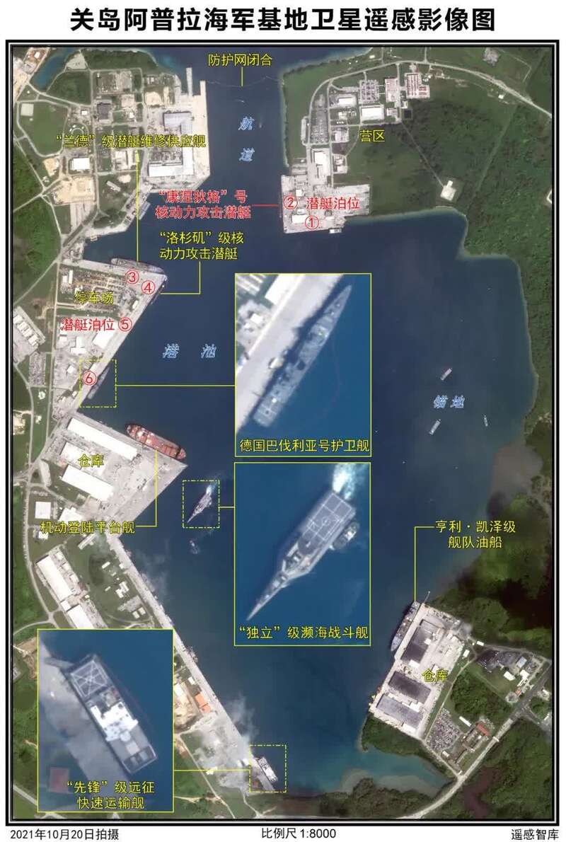 美海军“康涅狄格”号核潜艇驻泊于阿普拉海军基地,该基地位于关岛西南部,距离我国南海3200多公里(1700多海里),面积约5.1平方公里。