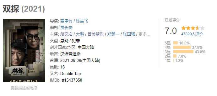 曾被观众给予厚望的《双探》勉强守住7.0分
