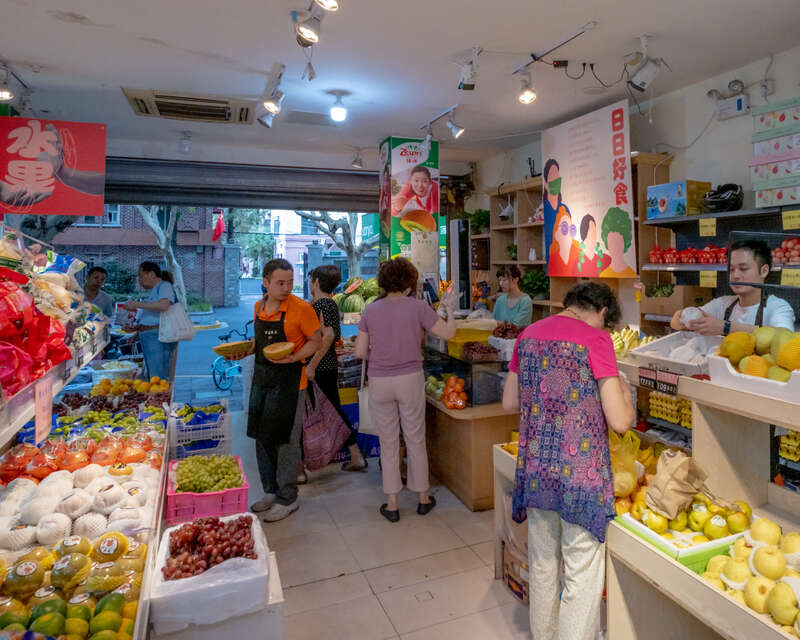 万园鲜品,就是离你居住地几百米范围内,一定会有的那种街坊生鲜小店。当季水果把入口处堆得满满当当,进去逛逛的话,收银小妹会热情招呼“有刚刚到货的新鲜葡萄柚哦”。