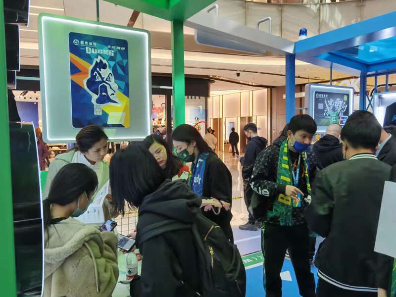 “为北京一起赢”是本次京城球迷快闪店的活动主题,本次活动将一直持续到11月21日。活动现场以球迷们最熟悉的“首钢蓝”和“国安绿”为主色,两只可爱的吉祥物“霹雳鸭”与“京狮”并肩而立,快闪店周围区域设计了多项与篮球、足球有关的运动小游戏,更有一面用多幅代表性照片装饰的“经典瞬间墙”供球迷朋友驻足拍照,资深球迷甚至可以根据照片说出每一个存留心中的比赛瞬间。