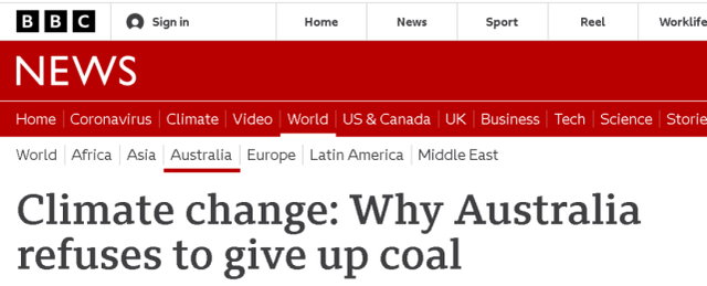 就连英国BBC都对于澳大利亚的这种做法感到不解,称澳大利亚不仅是全球最大的化石能源供应国,而且本国的绝大多数电力供应也在靠燃煤支撑,“这在富裕国家中很不寻常”。
